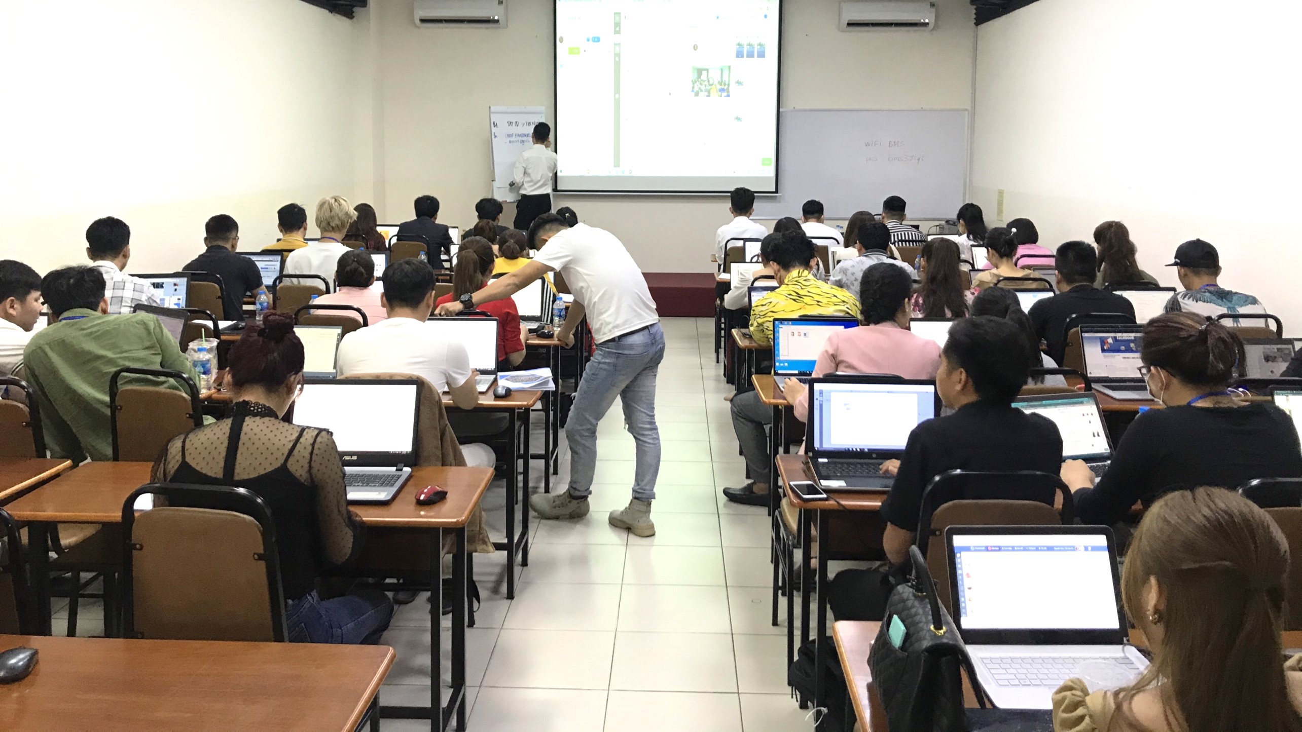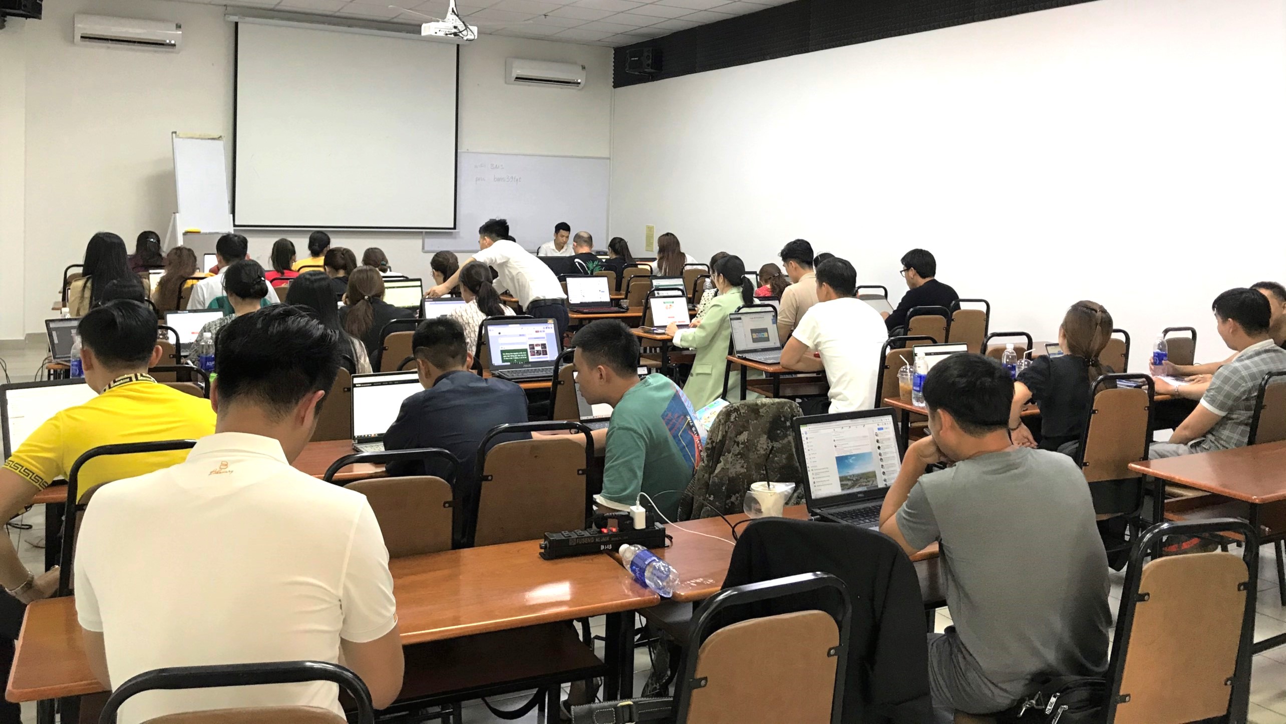 Giá trên đã bao gồm: Phòng học máy lạnh, Máy chiếu LCD projector, màn chiếu, máy vi tính, âm thanh, micro không dây, bảng flipchart, bảng trắng + viết lông, Internet và nước uống Lavie (bình nóng lạnh 19l).