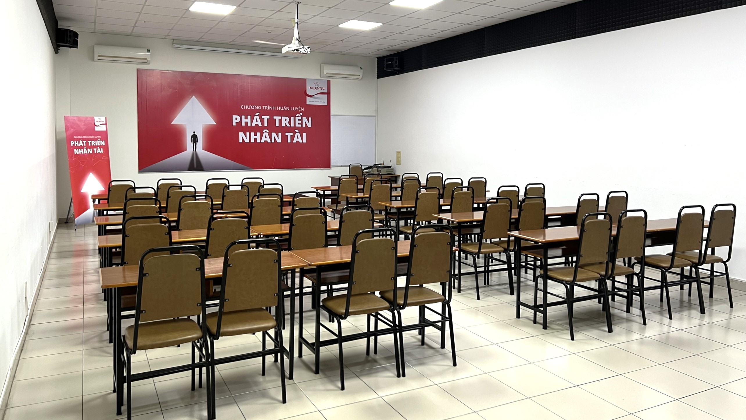Phòng học tiêu chuẩn, đẹp và sang trọng rất phù hợp với các sự kiện quan trong hoặc đào tạo cho doanh nghiệp.