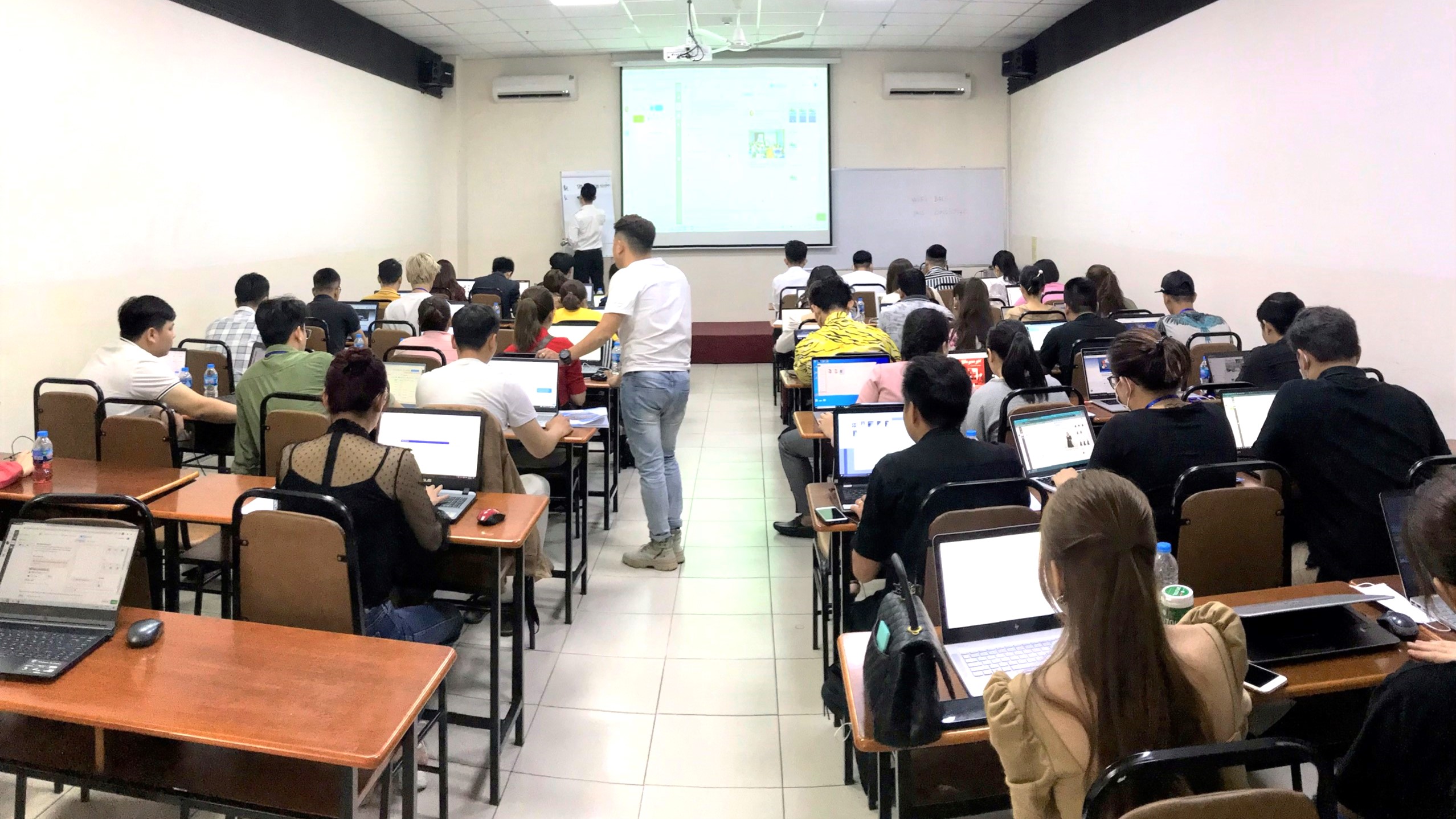 Phòng học (P501): diện tích 80m2 với sức chứa 130 khách kiểu rạp hát và 55-65 khách kiểu lớp học: